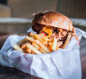 For a change try one of their sandwiches including the enormous Mother Clucker chicken sandwich topped with a fried egg and candied bacon. Long wait but definitely worth it. I saw the guy probing the temperature inside the meat to be sure it was tender at heart.