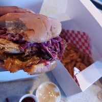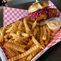 The fries are from a frozen bag but well cooked and seasoned with salt and spices. Hormone and antibiotic free chicken served on Kings Hawaiian Rolls. Wife liked her bad mother clucker chicken sandwich.